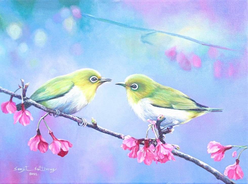 Acrylic Bird Painting on Canvas 'Fall in Love' Item ID: 2669889028