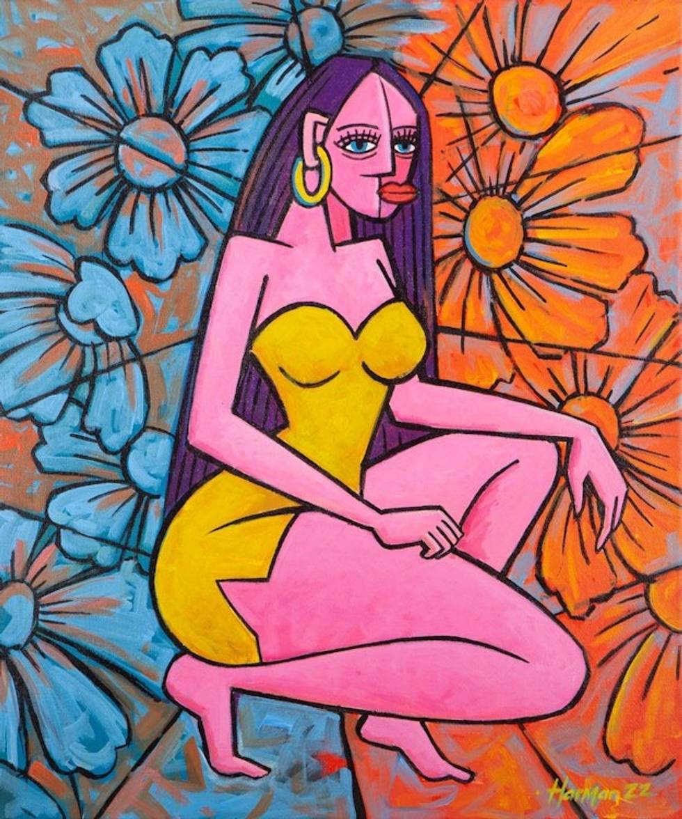 Acrylic Figure Painting with Floral Motif 'Ni Wayan Rukma' Item ID: 2669889428