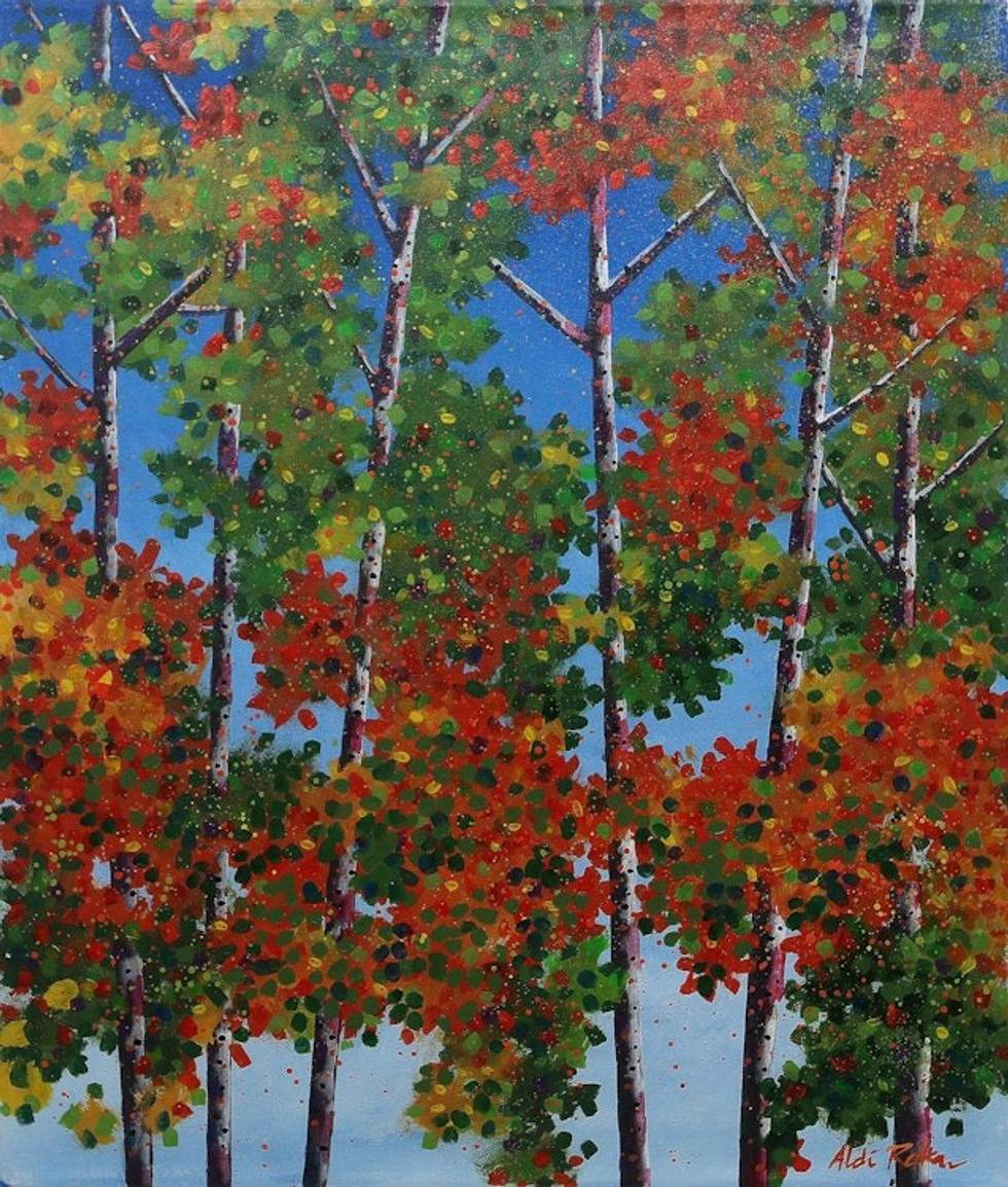 "My paintings are mostly of trees and with themes of the environment. I feel something shining in my mind when I draw a tree because, for me, the tree is the source of life in this world.