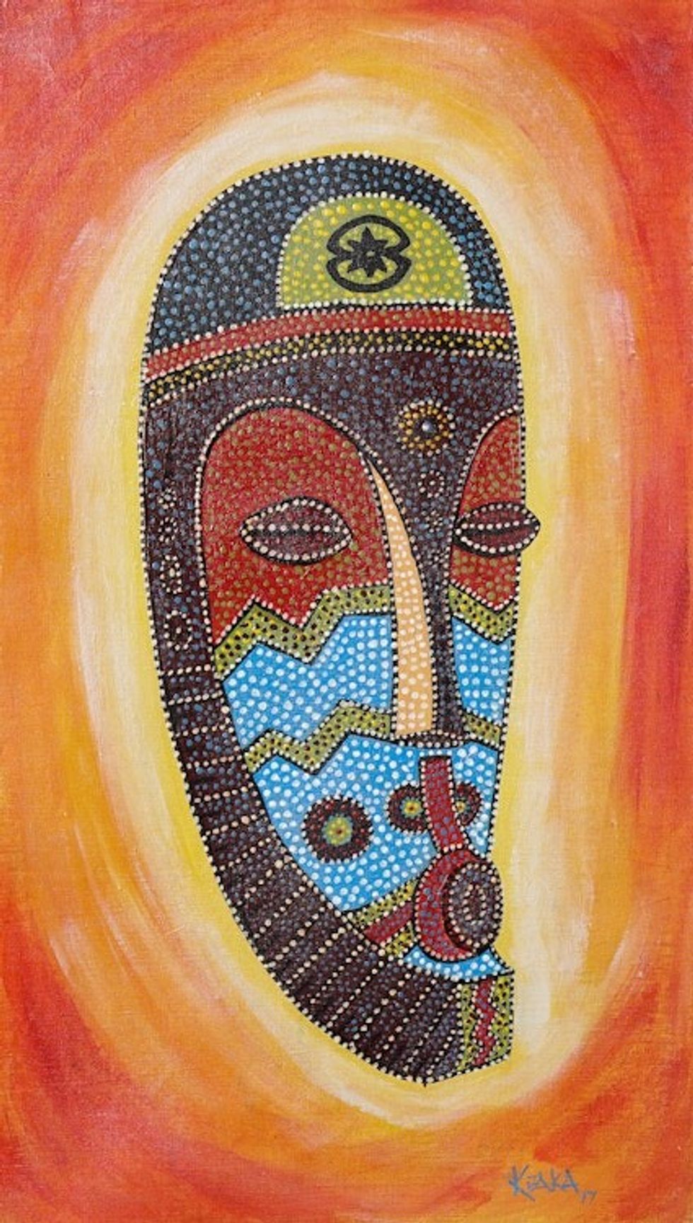 Acrylic Impressionist Style Painting of African Mask 'Other People's Misfortune' Item ID: 2669889648