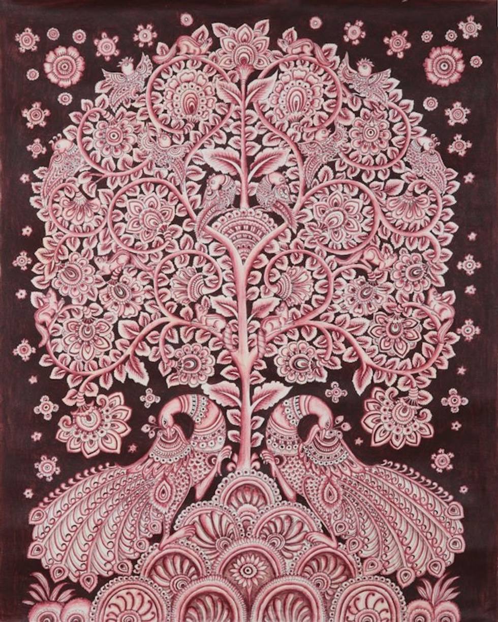 Acrylic Kalamkari Folk Art Painting 'The Red Symphony' Item ID: 2669889351
