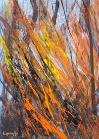 Acrylic Natural Dyes on Paper Abstract Fire Painting 'Grassland Fire' Item ID: 2669903797