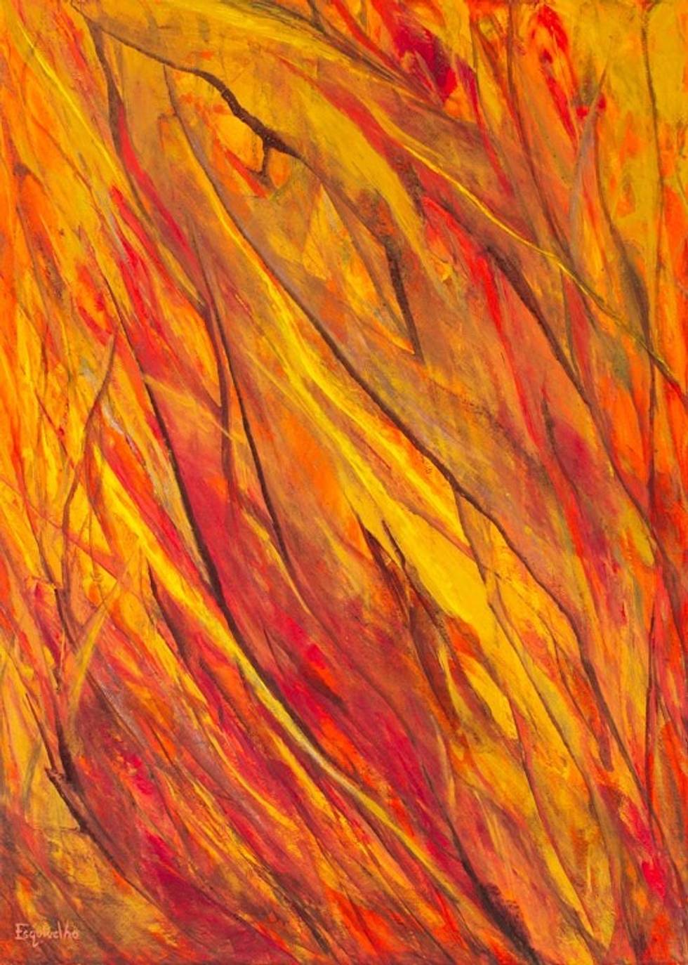 Acrylic Natural Dyes on Paper Abstract Painting of A Fire 'Fire Red Grassland' Item ID: 2669898998