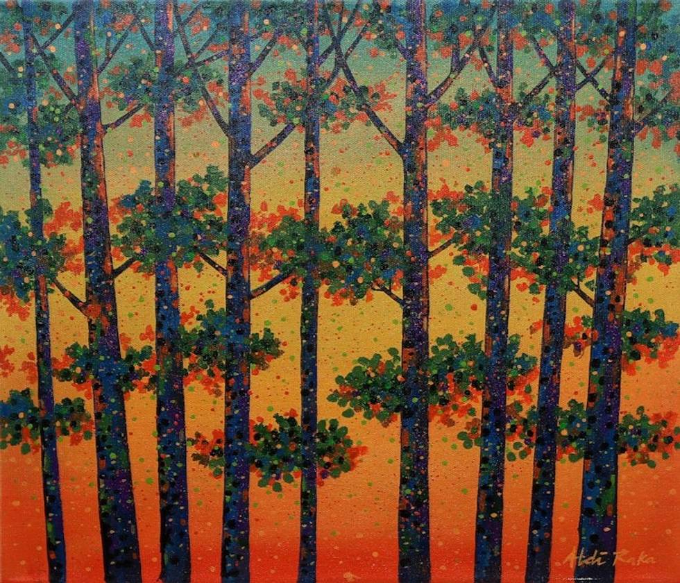 "My paintings are mostly of trees and with themes of the environment. I feel something shining in my mind when I draw a tree because, for me, the tree is the source of life in this world.