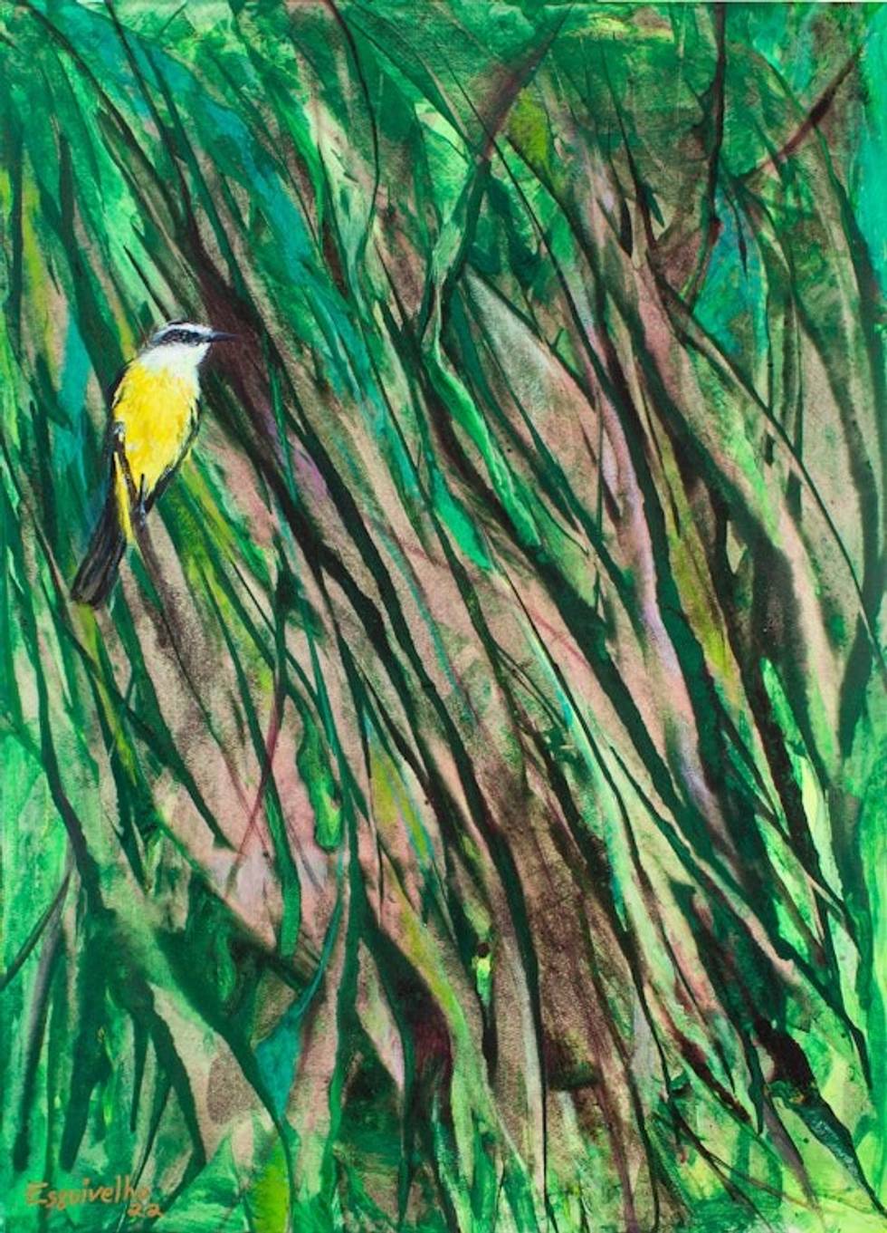 Acrylic Painting of A Great Kiskadee in The Grasslands 'Great Kiskadee in Grassland' Item ID: 2669898919