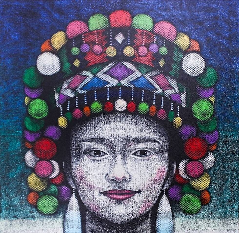 Acrylic Portrait of Woman with Traditional Hmong Headdress 'Ethnic Woman' Item ID: 2669889620