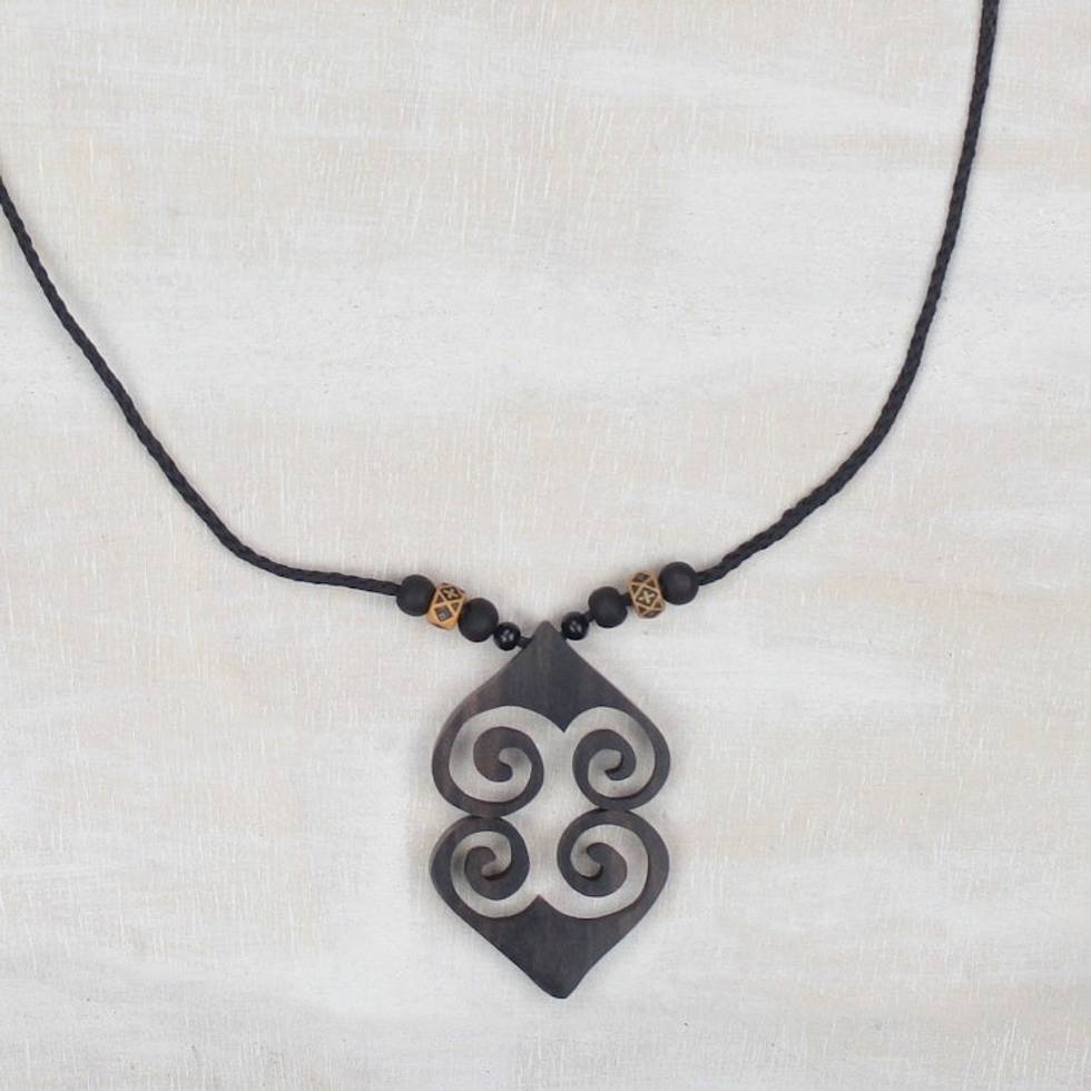 Adinkra Asase Ye Duru Sese Wood Pendant Necklace from Ghana 'Asase Ye Duru' Item ID: 2671805598