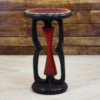 "Signifying the importance of unity, the traditional adinkra symbol Nkonsonkonson is hand-carved from sese wood, painted in contrasting black and red. Ghana's Raphat Asigbey designs this accent table, which is crafted by local artisans. Tri-tone triangular patterns decorate the round top."