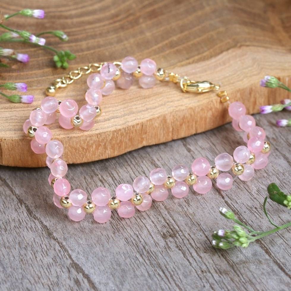 Adjustable 18k Gold-Accented Rose Quartz Beaded Bracelet 'Loving Splendor' Item ID: 2671669458