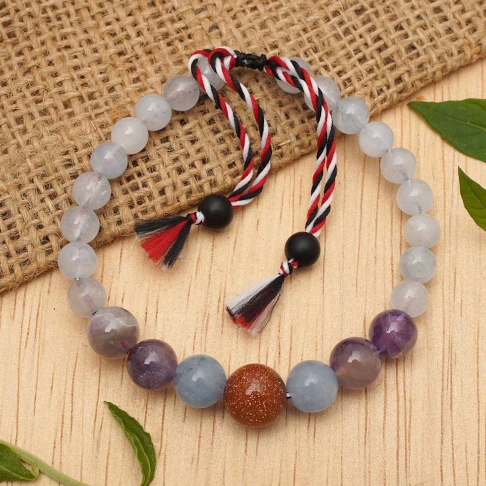 Adjustable Aquamarine and Amethyst Beaded Bracelet from Bali 'Times of Wisdom' Item ID: 2671765461