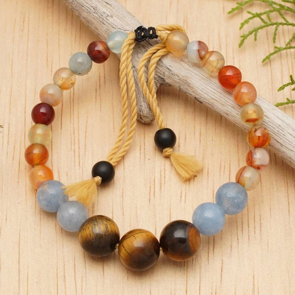 Adjustable Aquamarine and Tiger's Eye Bracelet Made in Bali 'Tranquil Soul' Item ID: 2671765577