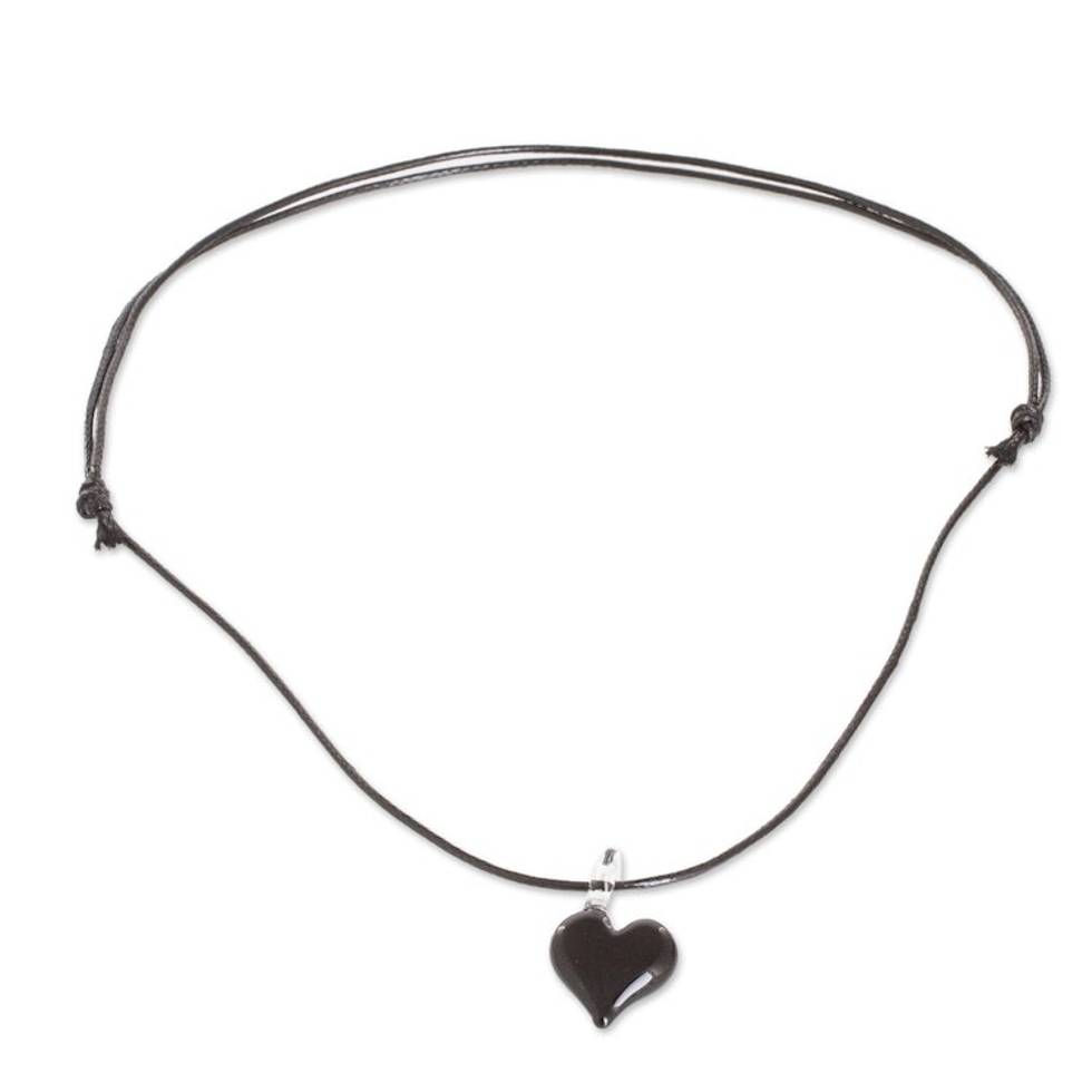 Adjustable Art Glass Necklace with Black Heart Pendant 'Night Passion' Item ID: 2671771225