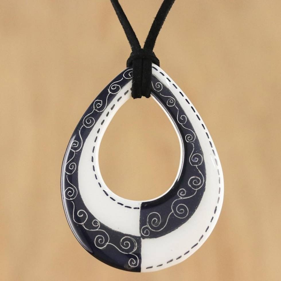 Adjustable Black and White Ceramic Teardrop Pendant Necklace 'Monochrome Magic' Item ID: 2671801392