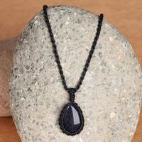 Adjustable Black Macrame Glass Pendant Necklace from Armenia 'Midnight Flair' Item ID: 2669940975