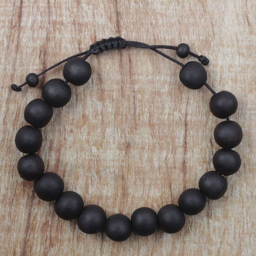 Adjustable Ebony Wood Beaded Bracelet from Ghana 'Chic Silhouettes' Item ID: 2671803583