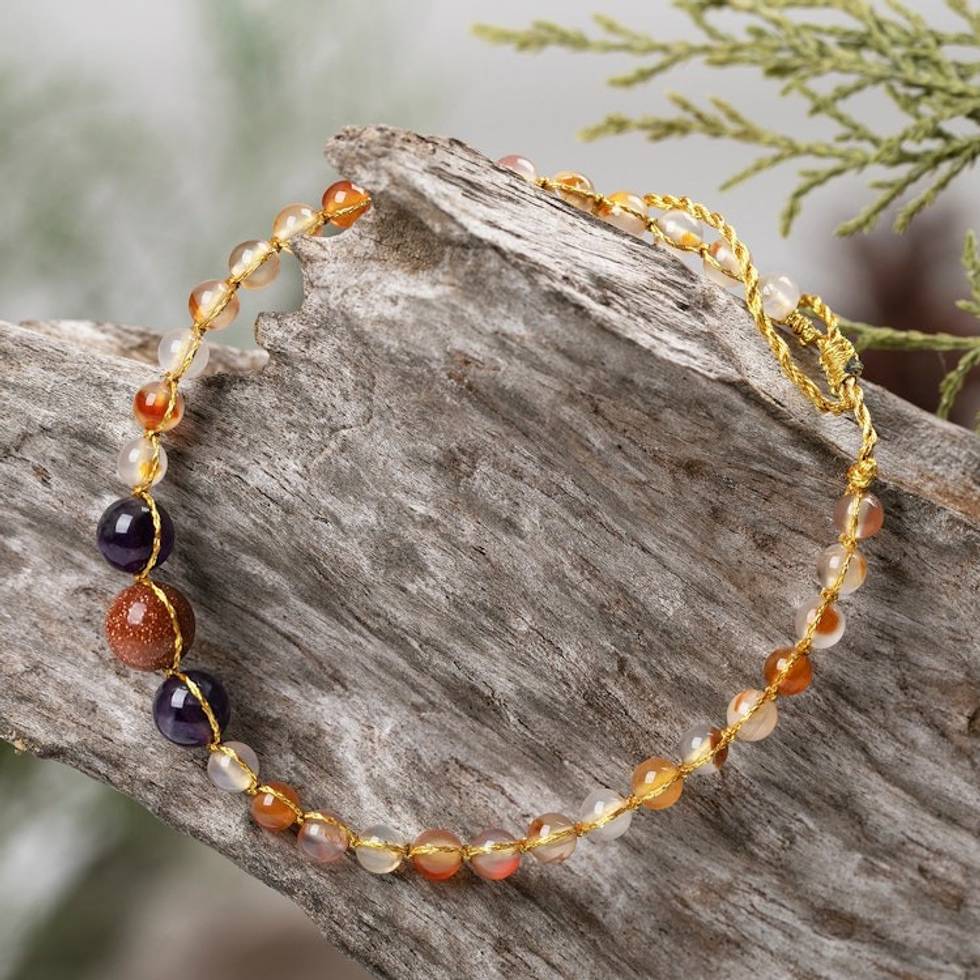 Adjustable Golden Chalcedony and Amethyst Beaded Bracelet 'Balanced Mind' Item ID: 2671765495