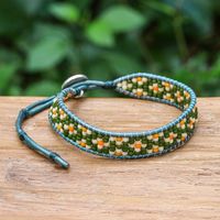 Adjustable Green and Ivory Glass Beaded Wristband Bracelet 'Peace at the Jungle' Item ID: 2671796871