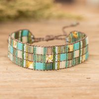 Adjustable Green Aqua Mosaic Glass Beaded Wristband Bracelet 'Magical Mosaic' Item ID: 2671769015
