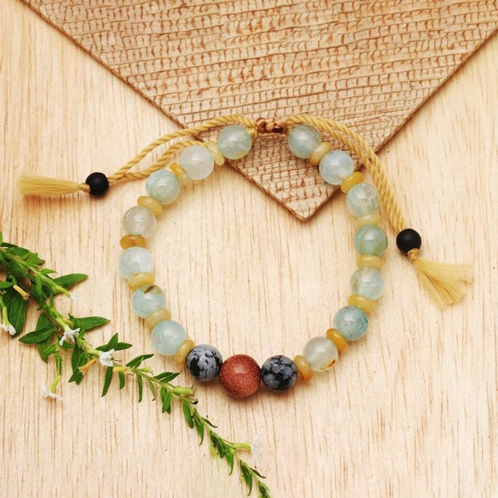 Adjustable Green Multi-Gemstone Beaded Bracelet from Bali 'Tranquil Waters' Item ID: 2671765339