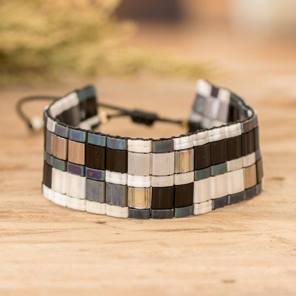 Adjustable Mosaic Style Glass Beaded Wristband Bracelet 'Luxurious Tiles' Item ID: 2671768891