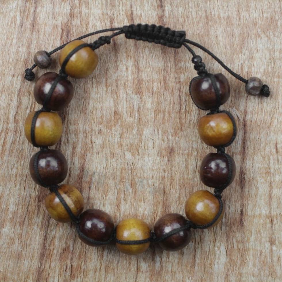 Adjustable Sese Wood Beaded Bracelet from Ghana 'Lively Shades' Item ID: 2671803925