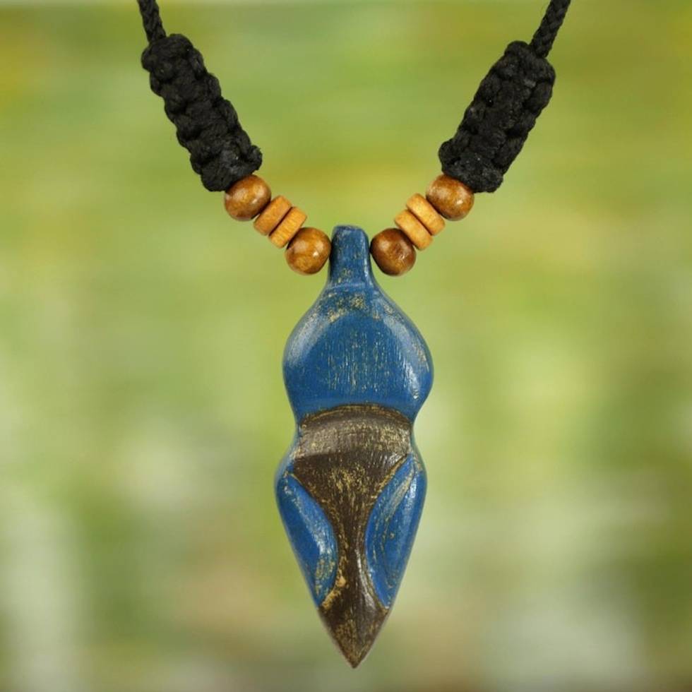 Adjustable Sese Wood Necklace in Blue and Black from Ghana 'Akwatia Diamond' Item ID: 2671803929