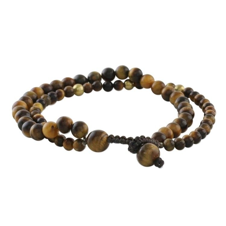 Adjustable Tiger's Eye Beaded Bracelet from Thailand 'Double Beauty' Item ID: 2671801460