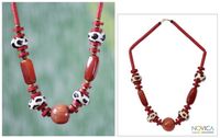 African Agate and Bone Beaded Necklace 'Taoure' Item ID: 2671806628