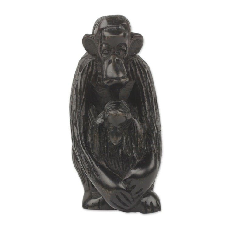 African Hand Carved Ebony Chimpanzee Motherhood Sculpture 'Mother Chimp' Item ID: 2671801187