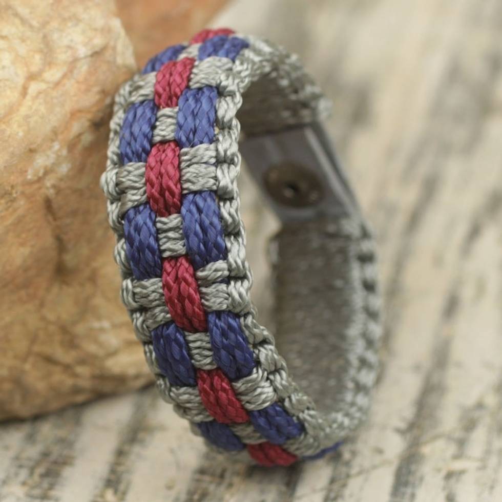 African Hand Crafted Men's Woven Cord Bracelet 'Love and Honor' Item ID: 2671803826