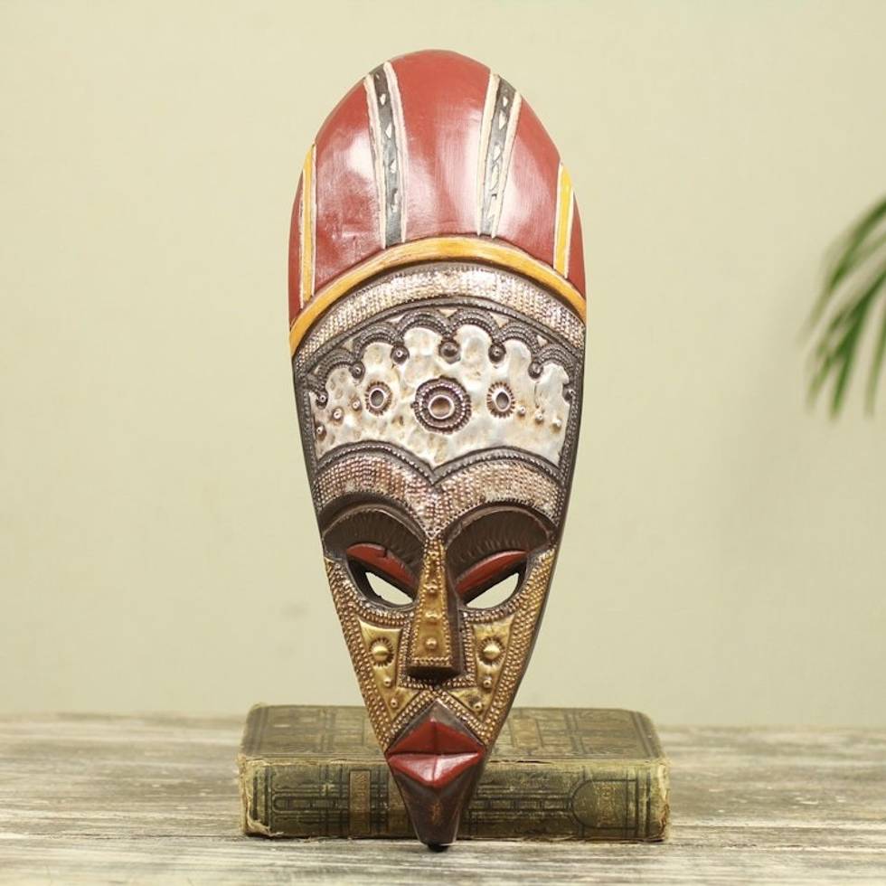 African King Wall Mask Crafted with Wood Aluminum and Brass 'Powerful Ohene' Item ID: 2671803769