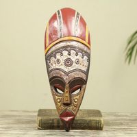 I was immediately attracted to the colors of this mask. They match my sofa and the painting hanging over it perfectly. And of course the expression of the mask is captivating. Sort of a sad face, but also a peaceful face. Love it!Superb crafting and imagination.Marsha