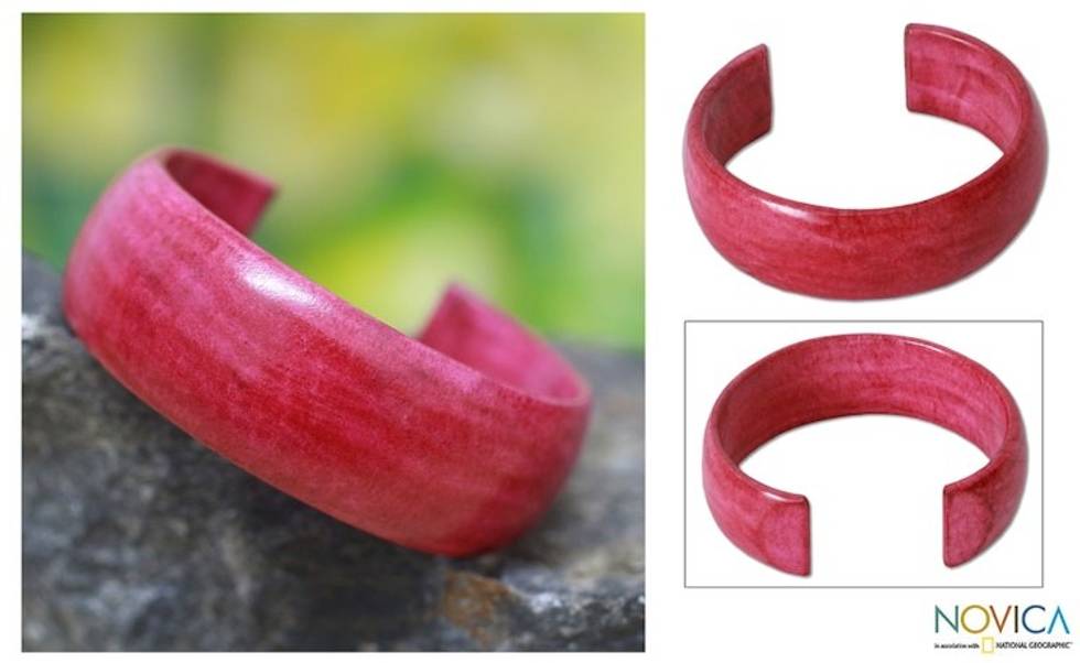 African Modern Leather Cuff Bracelet 'Annula in Pink' Item ID: 2671806861