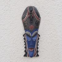 African Sese Wood Mask in Blue Crafted in Ghana 'Cultural Blue' Item ID: 2671805446