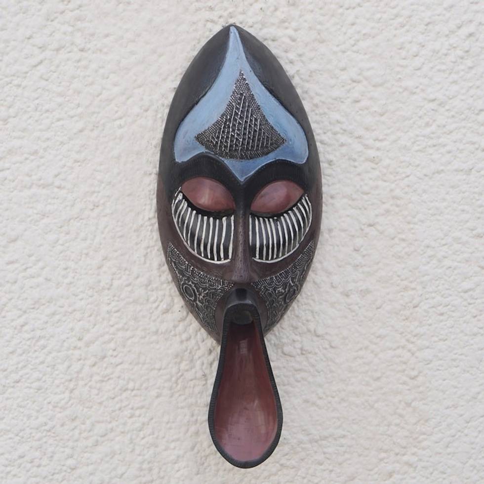 African Sese Wood Mask in Blue with Repousse Aluminum 'Ancestral Chant' Item ID: 2671804276