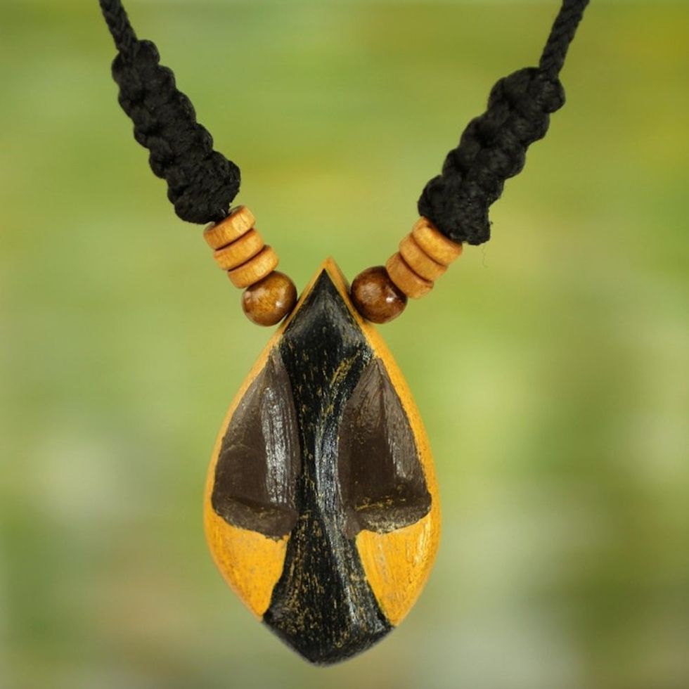 African Style Hand Carved Wood Necklace with Female Mask 'Manubea' Item ID: 2671803604