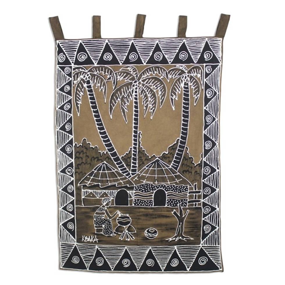 African Village Cotton Wall Hanging 'Abaa Ye Ni II' Item ID: 2671805690