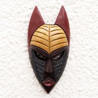 African Wood and Aluminum Mask Handcrafted in Ghana 'Ancestral Bat' Item ID: 2671804414