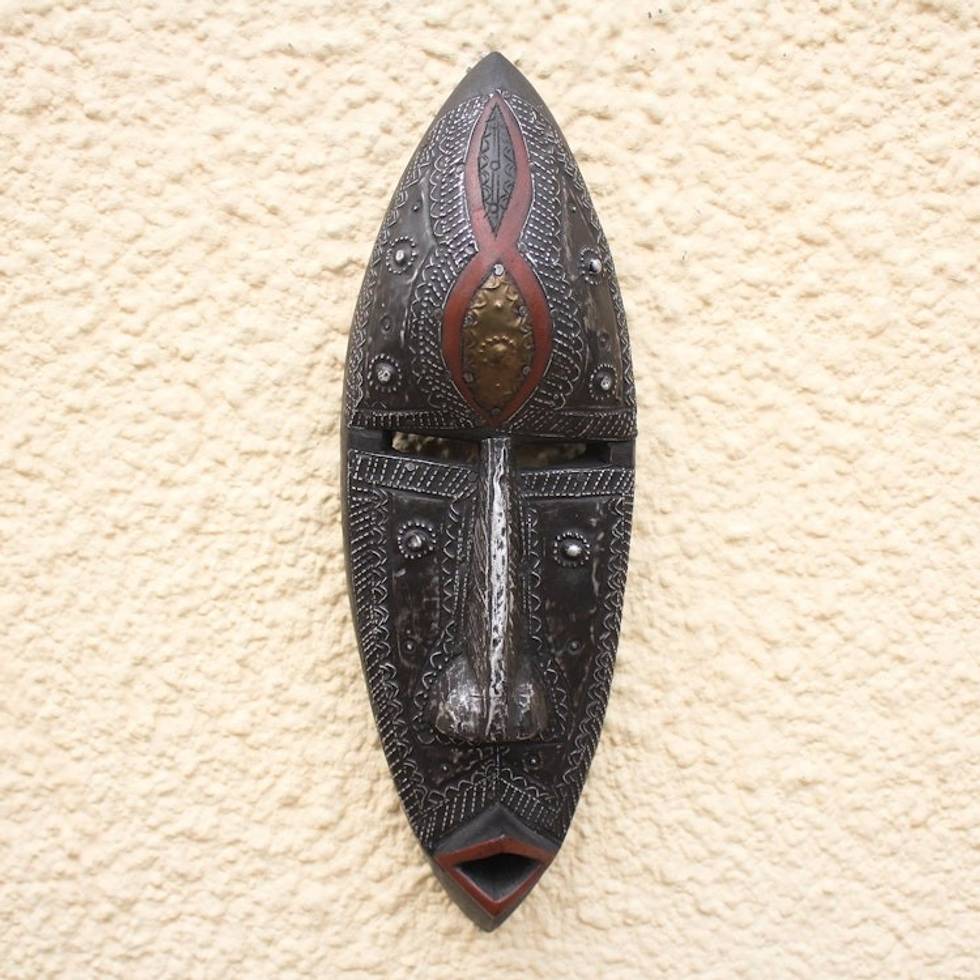 I'm intrigued by the mysterious expression on this face, but I was not sure if this mask would find an appropriate spot in my home. I shouldn't have worried. I love this piece and it just belongs in my home.