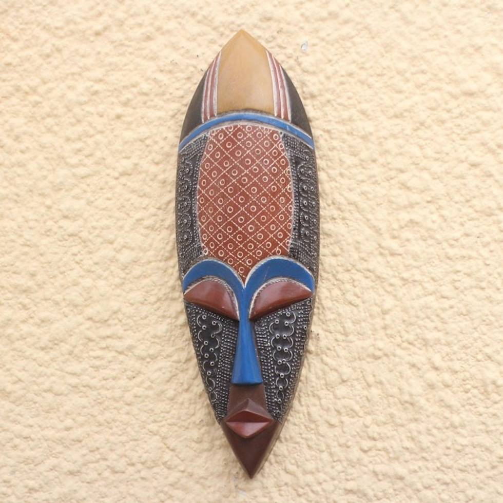 African Wood Mask Accented with Embossed Aluminum 'Feminine Patterns' Item ID: 2671806245