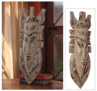 "Inspired by the art and customs of the Akan people, Samuel Okyere designs a regal mask aptly termed Ahenfo. It means 'royal' in the Twi dialect of the Akan people. Okyere carves the sese wood mask by hand featuring a crown, and decorates it with embossed aluminum plates and painted details. 'This mask is intended to symbolize a powerful king,' explains the Ghanaian artisan."