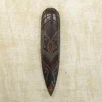 I'm intrigued by the mysterious expression on this face, but I was not sure if this mask would find an appropriate spot in my home. I shouldn't have worried. I love this piece and it just belongs in my home.