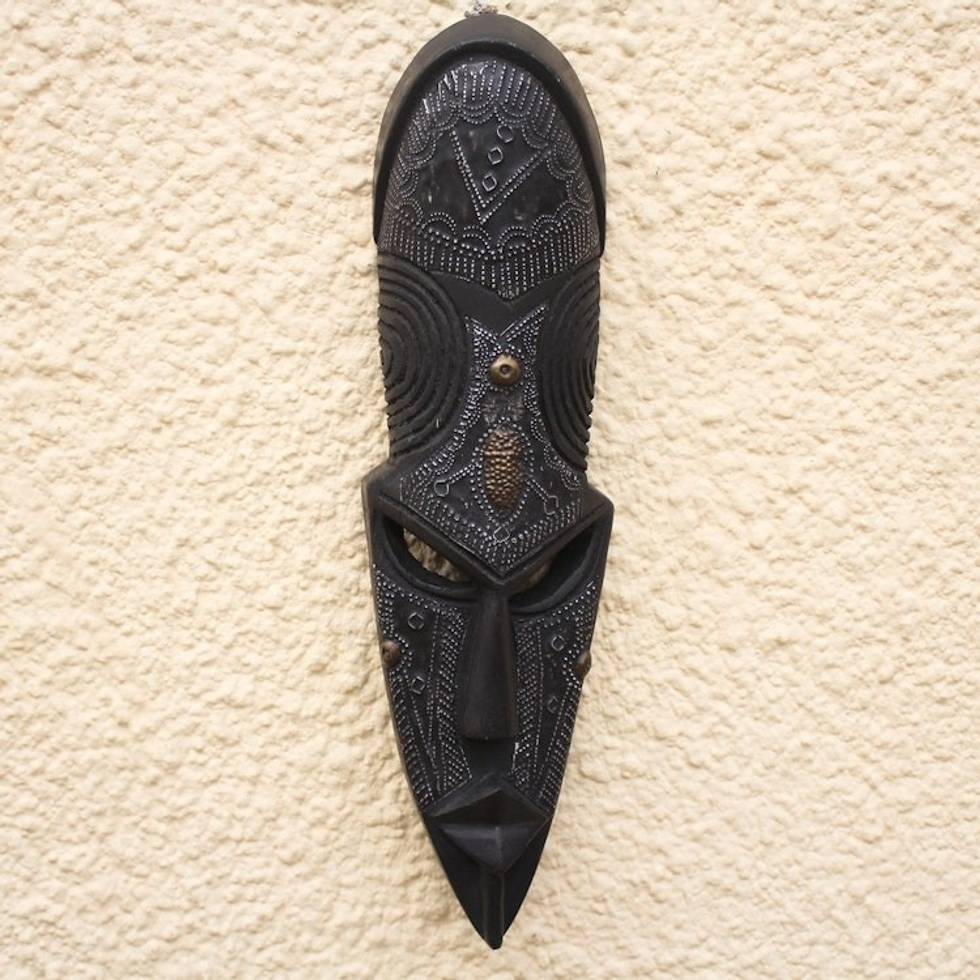 I'm intrigued by the mysterious expression on this face, but I was not sure if this mask would find an appropriate spot in my home. I shouldn't have worried. I love this piece and it just belongs in my home.