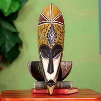 I was immediately attracted to the colors of this mask. They match my sofa and the painting hanging over it perfectly. And of course the expression of the mask is captivating. Sort of a sad face, but also a peaceful face. Love it!Superb crafting and imagination.Marsha