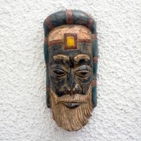 "Depicting a Roman priest, this African mask is created by Winfred Korley in Ghana. He hand-carves this mask from sese wood, depicting the priest with a regal headdress and noble beard. This sculpture is given a rustic finish for a striking addition to your home decor."