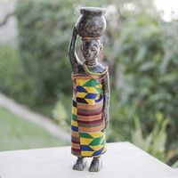 African Wood Sculpture with Cotton Kente 'Homowo Festival II' Item ID: 2671806660