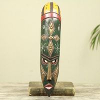 I was immediately attracted to the colors of this mask. They match my sofa and the painting hanging over it perfectly. And of course the expression of the mask is captivating. Sort of a sad face, but also a peaceful face. Love it!Superb crafting and imagination.Marsha