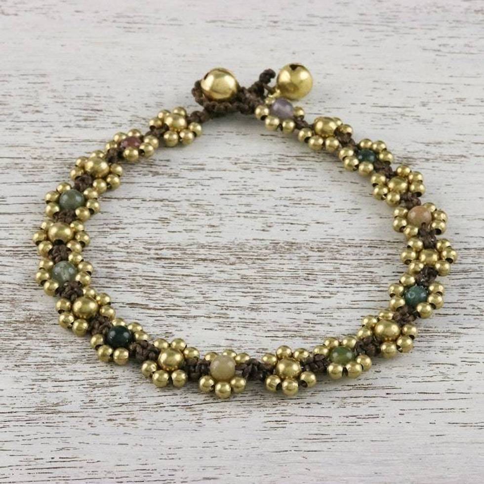 Agate Adjustable Beaded Anklet from Thailand 'Musical Dream' Item ID: 2676649244
