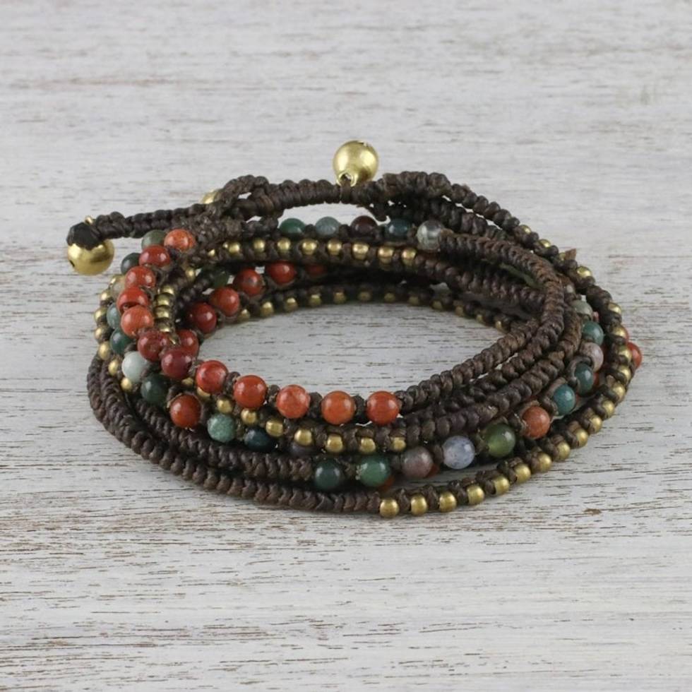 Agate and Jasper Beaded Wrap Bracelet 'Voice of the Forest' Item ID: 2671801574