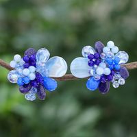 Agate and Lapis Lazuli Cluster Clip-On Earrings 'Solaris in Blue' Item ID: 2669926185